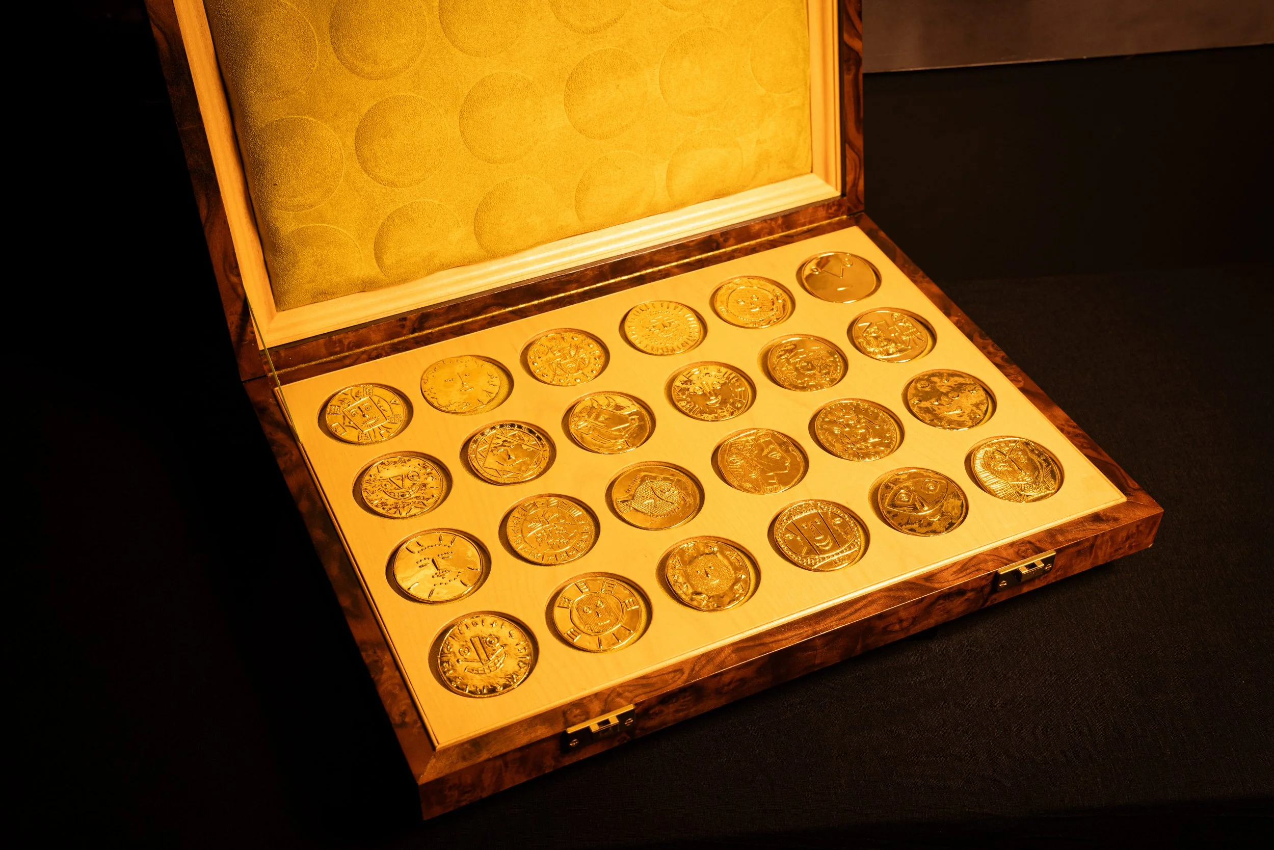 This rare collection of 23 karat gold medallions and silver plates by Pablo Picasso is only on view as a complete set at Hedonist Art Gallery in Dubai. These limited edition pieces are among the rarest collectible works available on the market, offering a unique chance to see the full series together.